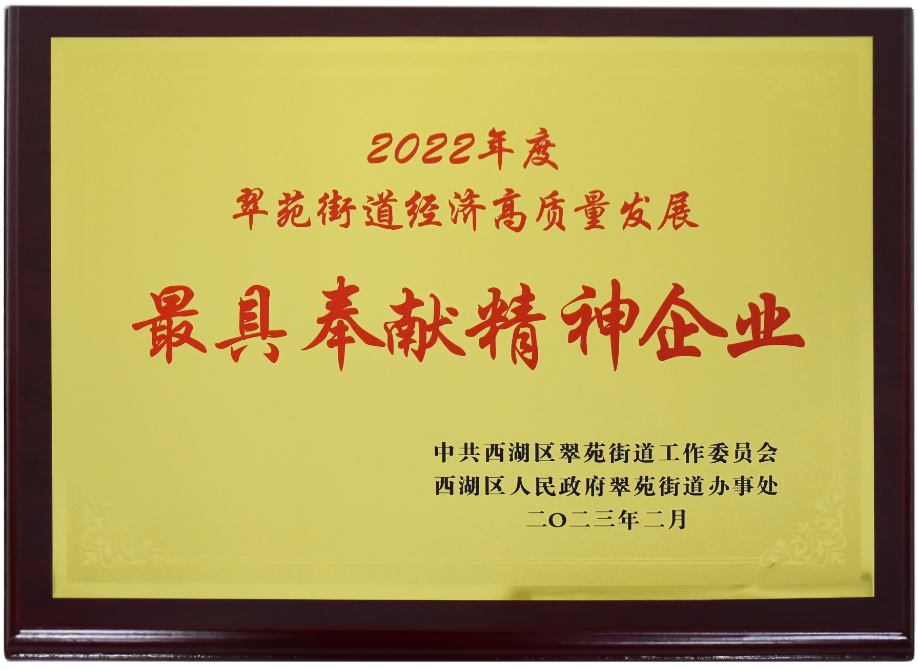 2022年翠苑街道經(jīng)濟(jì)高質(zhì)量發(fā)展-最具奉獻(xiàn)精神企業(yè)